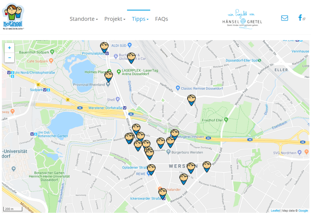 Bei der Wersten-Rallye geht es darum, dass die Kinder die Notinseln in ihrem Stadtteil kennen lernen. Notinsel ist eine Initiative, bei der es um den Schutz von Kindern geht. Ladenlokale bieten sich hierbei als „Notinsel“ an. (Bildquelle)