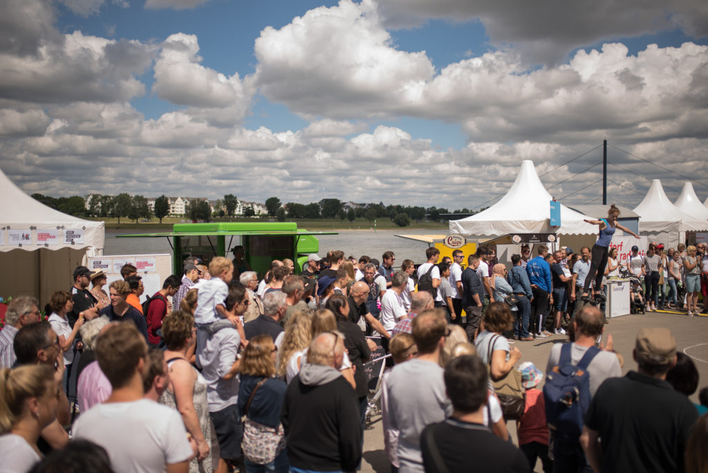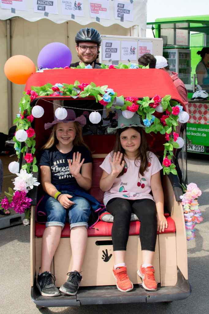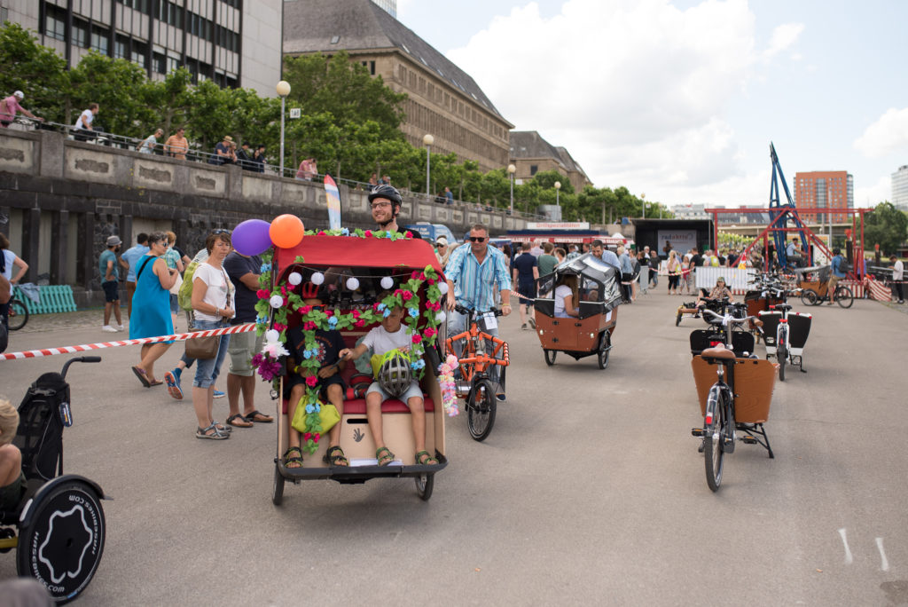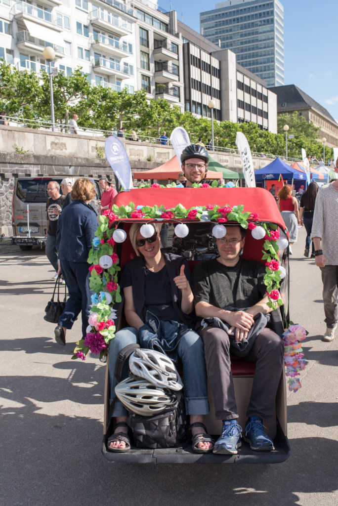 Am Sonntag, den 16. Juli verwandelte sich die untere Rheinwerft von der Apollo-Wiese bis zu den Kasematten zu einer bunten Fahrrad-Aktionsfläche. Mittendrin versetzte die Rikscha, mit ihrem Blumenschmuck und Hawaii-Girlanden die Fahrgäste bei herrlichem Sonnenschein schnell in Urlaubsstimmung.