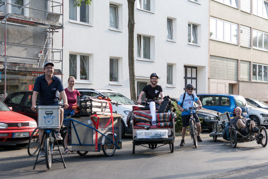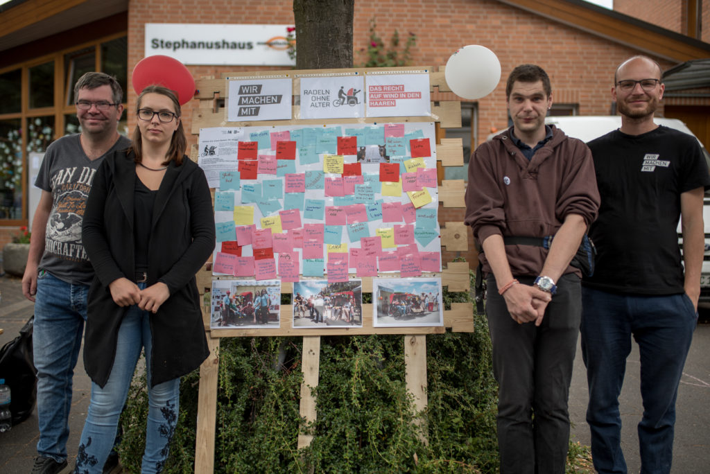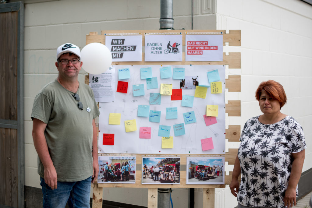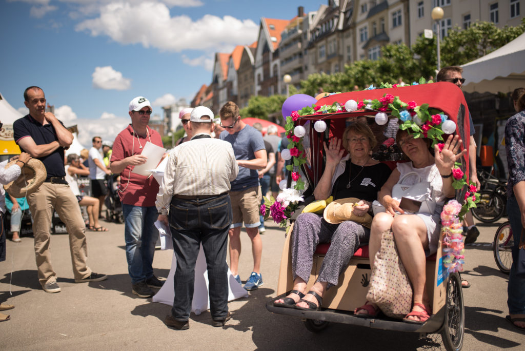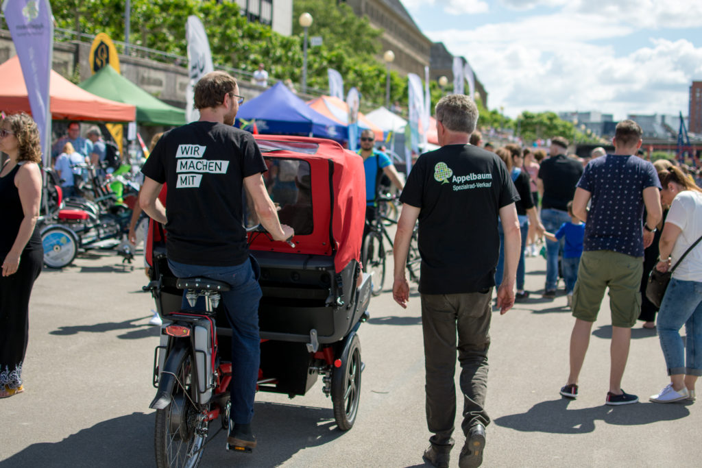 „Wie ein Urlaub auf Mallorca!“ – „Wir machen mit!“ stellt die inklusive Stadtteil-Rikscha auf dem Radaktiv-Tag am Mannesmannufer vor.