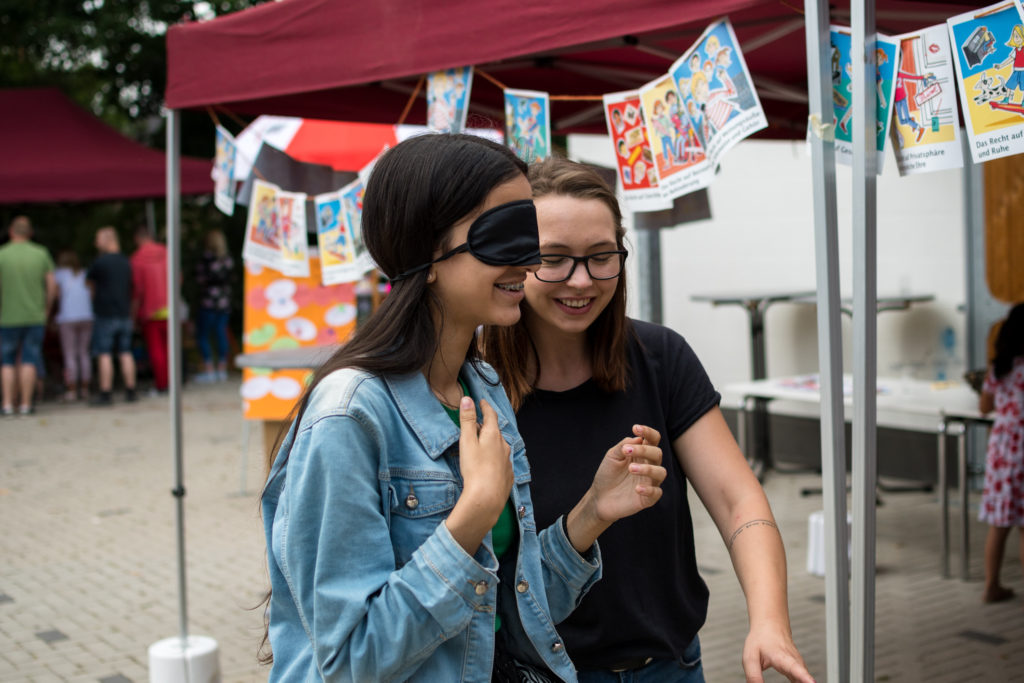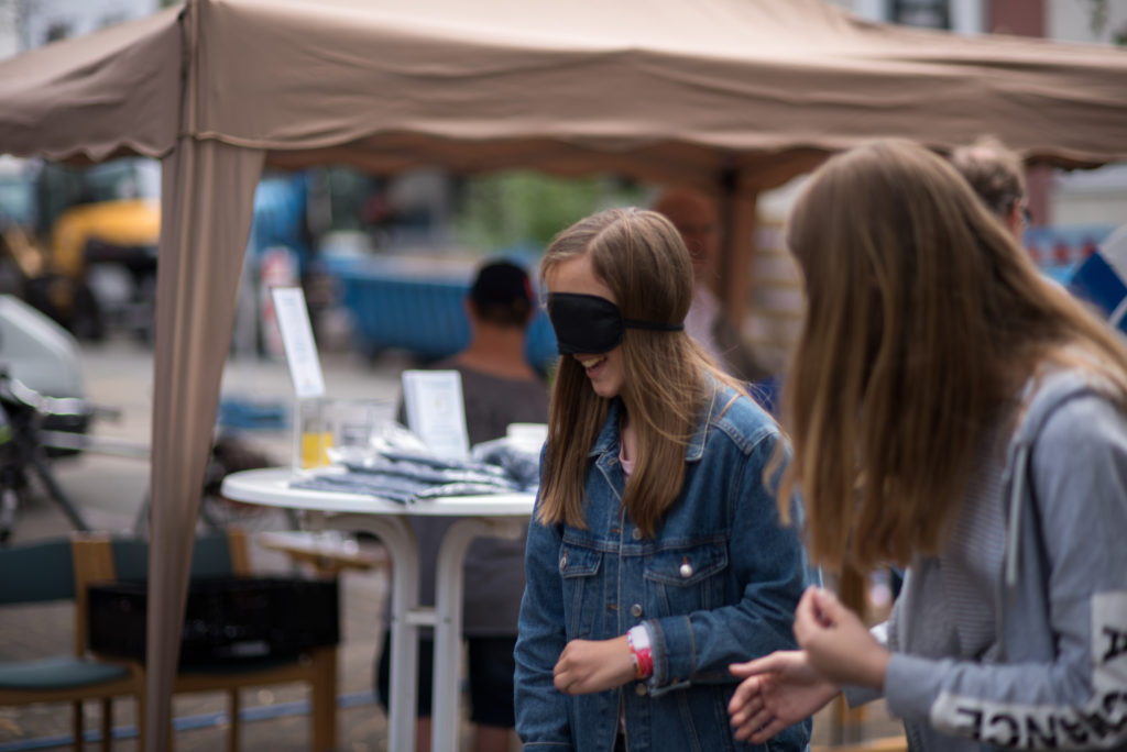 Außerdem konnten die Kinder und Jugendlichen am Handicap-Parcours teilnehmen und erfahren, wie es ist nicht sehen, sprechen oder laufen zu können.