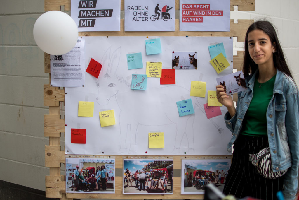 Viele Besucher inspirierte der „Wind in den Haaren“ während der Rikscha-Fahrt zu einem Namensvorschlag. Andere wiederum blieben einfach am Stand stehen und hatten spontane Einfälle. Eine junge Dame, eine Grafik-Designerin, zauberte sogar einen handgezeichneten Esel auf die Stellwand. Und ein origineller Name fiel ihr auch gleich noch ein.