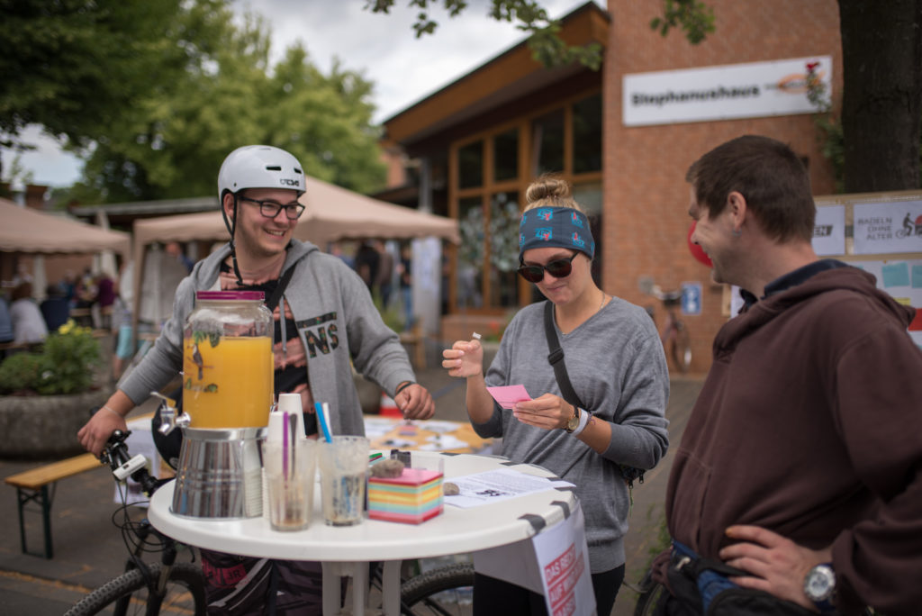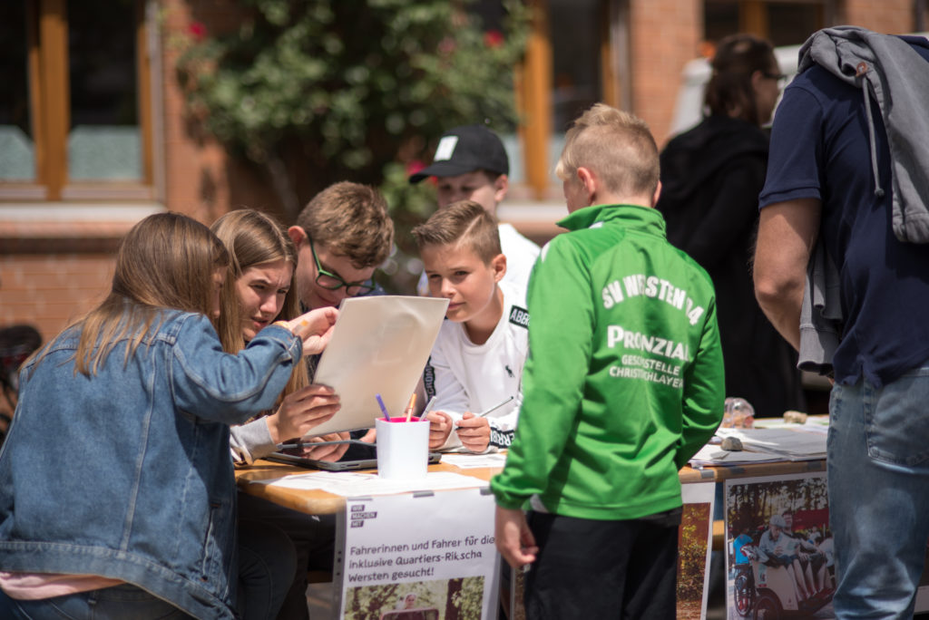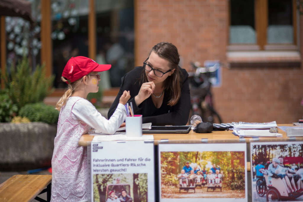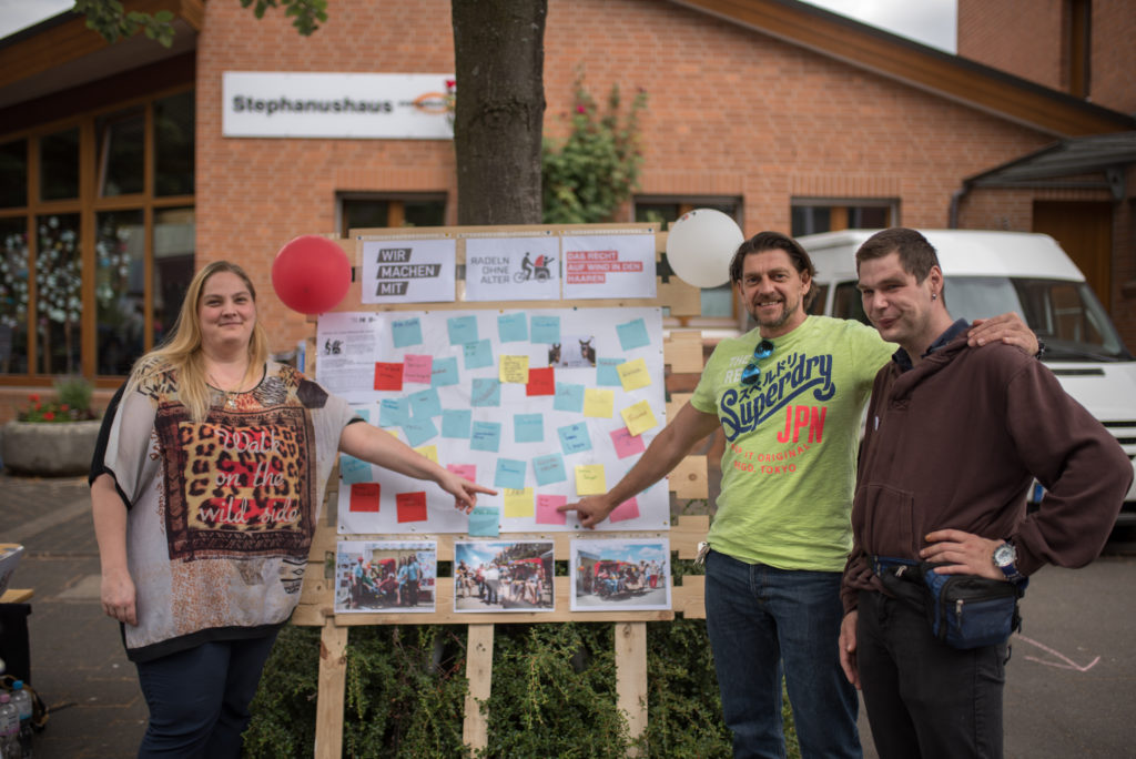 Beim diesjährigen Gemeindefest der Evangelischen Kirchengemeinde Wersten am Stephanushaus waren wir mit unserem Handicap-Parcours dabei und haben Namen für die inklusive Quartiers-Rikscha gesammelt. Mit den anderen Veranstaltungen zusammen sind nun insgesamt unglaubliche 143 Vorschläge abgegeben worden- herzlichen Dank für die fantastische Beteiligung!