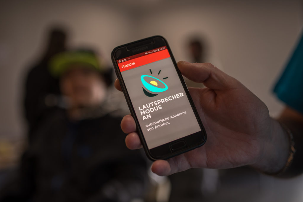 Das Birne7-Team aus Erlagen hat sich mit dem Problem auseinandergesetzt und eine App programmiert: Mit der App „Flash Call“ können Anrufe automatisch und ohne Betätigung von Knöpfen entgegengenommen werden. Dazu muss ein Headset oder Lautsprecher mit dem Telefon verbunden sein. Die Nutzer*innen werden über eingehende Gespräche per Sprachausgabe informiert. Künftig sollen Anrufe auch per Spracheingabe angenommen bzw. abgelehnt werden können.
