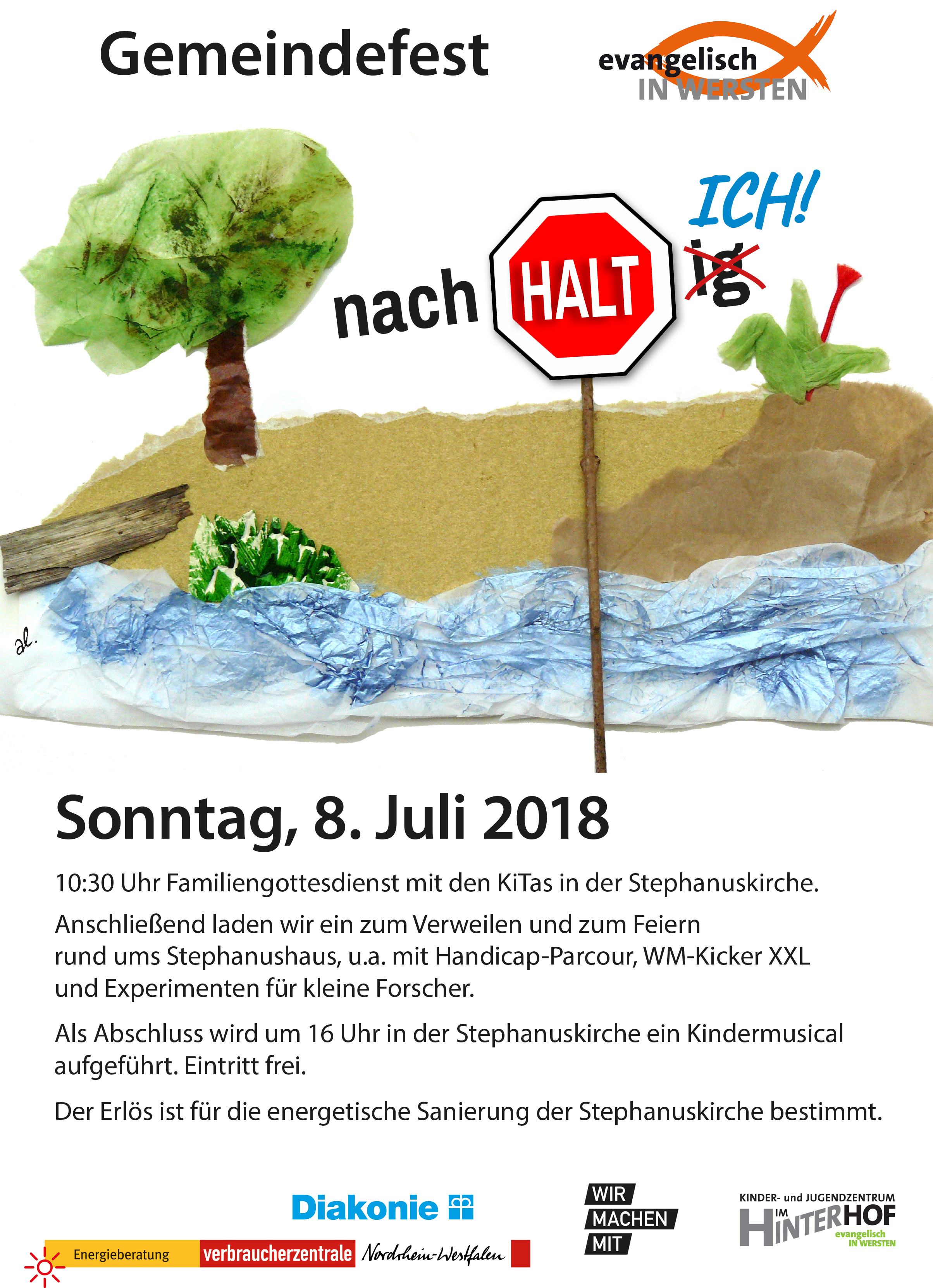Das Fest beginnt um 10:30 Uhr mit einem Familiengottesdienst in der Stephanuskirche. Anschließend startet das bunte Programm rund um das Gemeindehaus. Unter anderem wird es einen XXL-WM-Kicker und Experimenten für kleine Forscher geben. Als Abschluss wird um 16:00 Uhr in der Stephanuskirche ein Kindermusical aufgeführt. Der Erlös des Gemeindefestes ist für die energetische Sanierung der Stephanuskirche bestimmt. Eintritt frei.