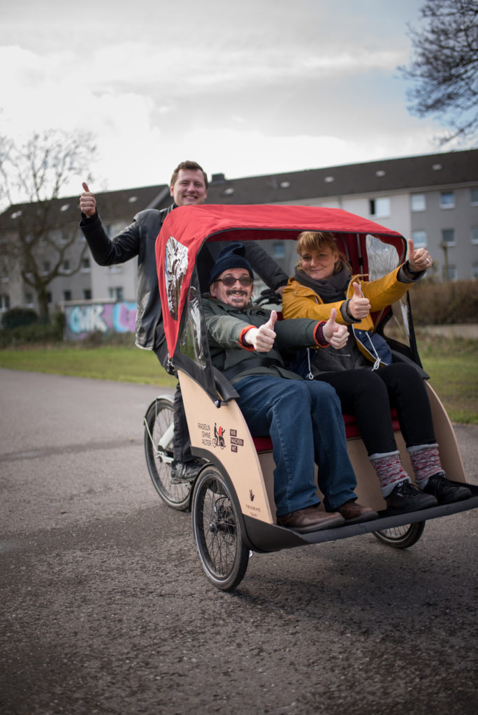 Interessierte Ehrenamtliche – egal ob jung oder alt – sind herzlich eingeladen, sich persönlich über das Angebot zu informieren oder an einer Rikscha-Probefahrt teilzunehmen. Die ehrenamtlichen Fahrerinnen und Fahrer können nach einer Einweisung Touren mit Fahrgästen unternehmen und Geschichte erfahren, die in keinem Buch zu finden sind!